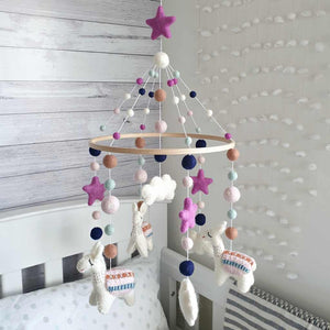 Complete your nursery with this beautiful Baby Pink and Mulberry Llama mobile. This striking design makes it a perfect mobile for bassinet or cot - enchanting, soothing and calming your little one.