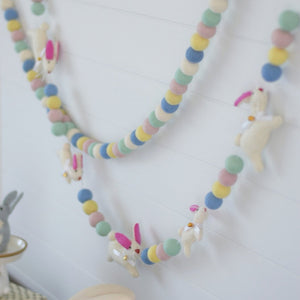 Our photos show two separate garlands (one standard and one luxe) - choose your option from the drop down box for either a standard design with felt balls only or a luxe design with bunnies. If you want to recreate the same look then purchase both garlands. As you can see in the photos, they look amazing when hung together!