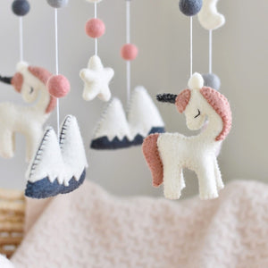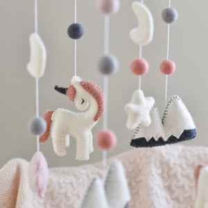 The Dusky Pink unicorn mobile is an adorable creation that baby will love!