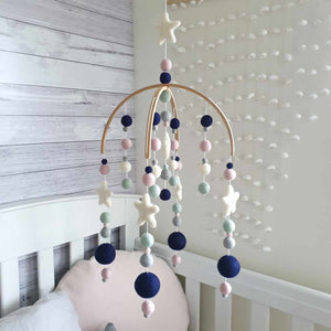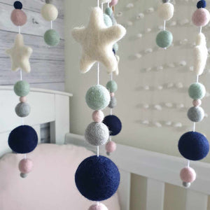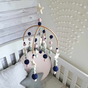 This beautiful felt cot mobile will spin gently with the slightest breeze and captivate your little one.