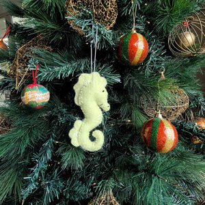 Add personality to your tree this year with our hand crafted seahorse ornament! Perfect for ocean loving friends or a sea and coastal inspired theme. Each one has been made by hand and is designed to bring some added fun to your festivities.