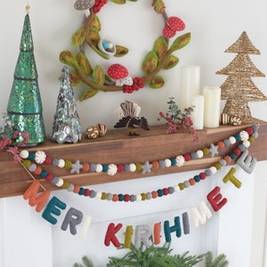 Meri Kirihimete felt garlands in festive and modern Christmas colours. Handcrafted and hand stitched using 100% felt wool, this will look great in any home and bring a little more seasonal cheer your way