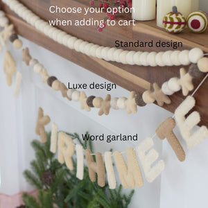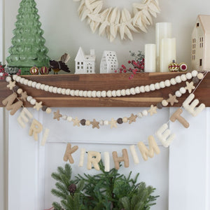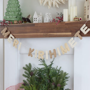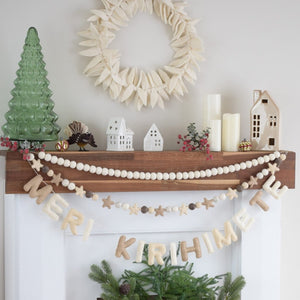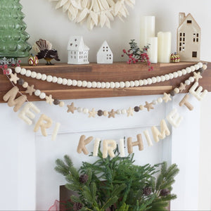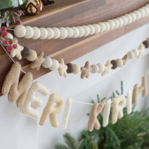 Meri Kirihimete felt garland in neutral colours. Handcrafted and hand stitched using 100% felt wool.