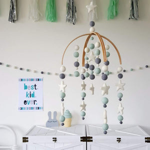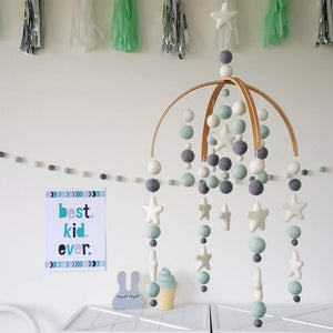 Our mobiles are made from all natural fibres and materials so they are not only gorgeous but safe for baby and the environment.