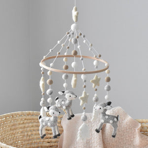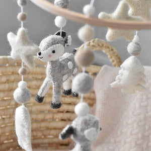 Each deer and tree is hand made and hand stitched and is filled with hypoallergenic polyfibre filling. Our deer are 3D and designed to look great at any angle, with beautiful detailing on the face and body creating a cot mobile baby will adore.