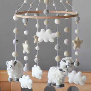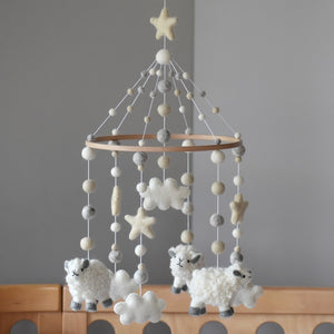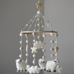 The colours for the felt balls in this mobile are white, cream and natural brown.