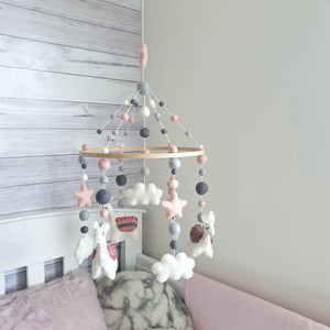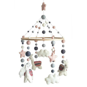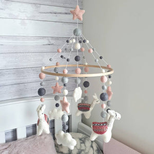 Surprise and delight your little one with this Pink & Grey Llama mobile. With lovingly stitched detail and soft colours this is one of the cutest nursery mobiles!