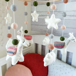 Made with eco-friendly wool felt, each llama and cloud is hand made, hand stitched and filled with hypoallergenic polyfibre filling.