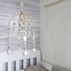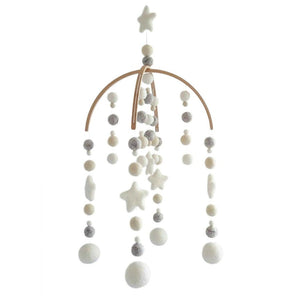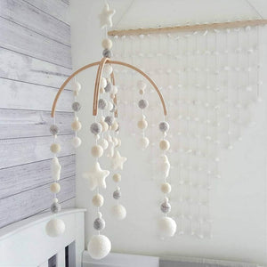 A beautiful hanging mobile in soft , natural and neutral colours that will soothe and calm your little one.