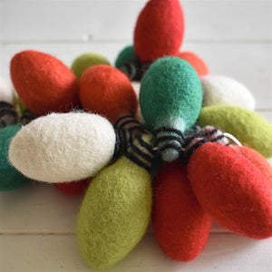 Perfect hung along a mantle piece, in front of a window or across your Christmas stockings. These are also a great Christmas addition to your child's bedroom as the 'lights' are made of 100% wool felt.