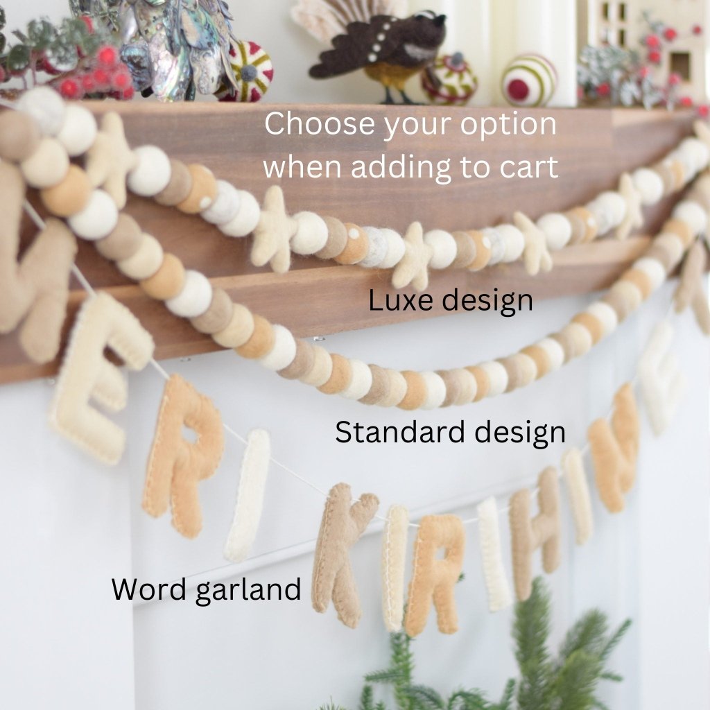 • Length: The luxe and standard felt garlands have approx 3 metres of string with 45 felt pieces on each garland.