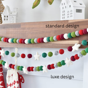 Our photos show two separate garlands (one standard and two luxe) - choose your option from the drop down box for either a standard design with felt balls only or a luxe design with peppermints and stars. If you want to recreate the same look then purchase all three garlands.As you can see in the photos, they look amazing when hung together!