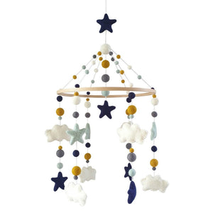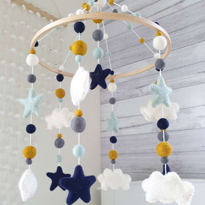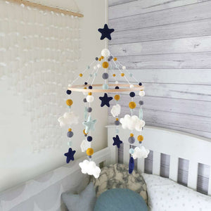 Another of our gorgeous baby mobiles cot designs with hand cut and hand stitched clouds made using 100% wool felt and filled with a hypoallergenic polyfibre filling