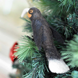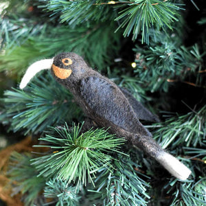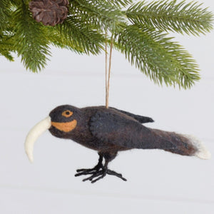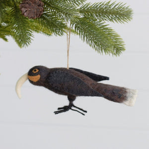 Our Huia is made to be enjoyed and admired from every angle. Detailing and unique colouring with several shades of brown throughout, distinctive white tail leathers and a long curved beak.