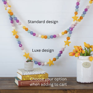 Our photos show two separate garlands (one standard and one luxe) - choose your option from the drop down box for either a standard design with felt balls only or a luxe design with polka dot balls and stars. If you want to recreate the same look then purchase both garlands. As you can see in the photos, they look amazing when hung together!