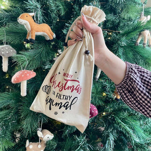 Made from a sturdy cotton and printed by hand, these heirloom quality Christmas Bags are made to last and look wonderful under the Christmas tree! Great for work parties and Secret Santas!