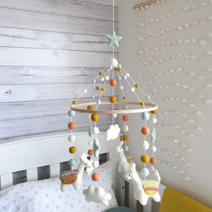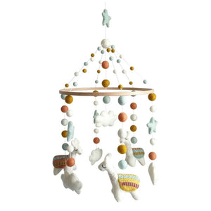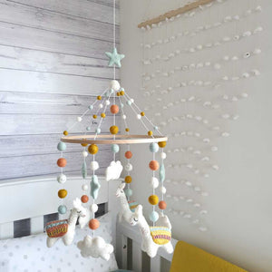 Featuring gorgeous mustard and mint Llamas this animal and felt ball mobile is an on trend addition to any nursery!